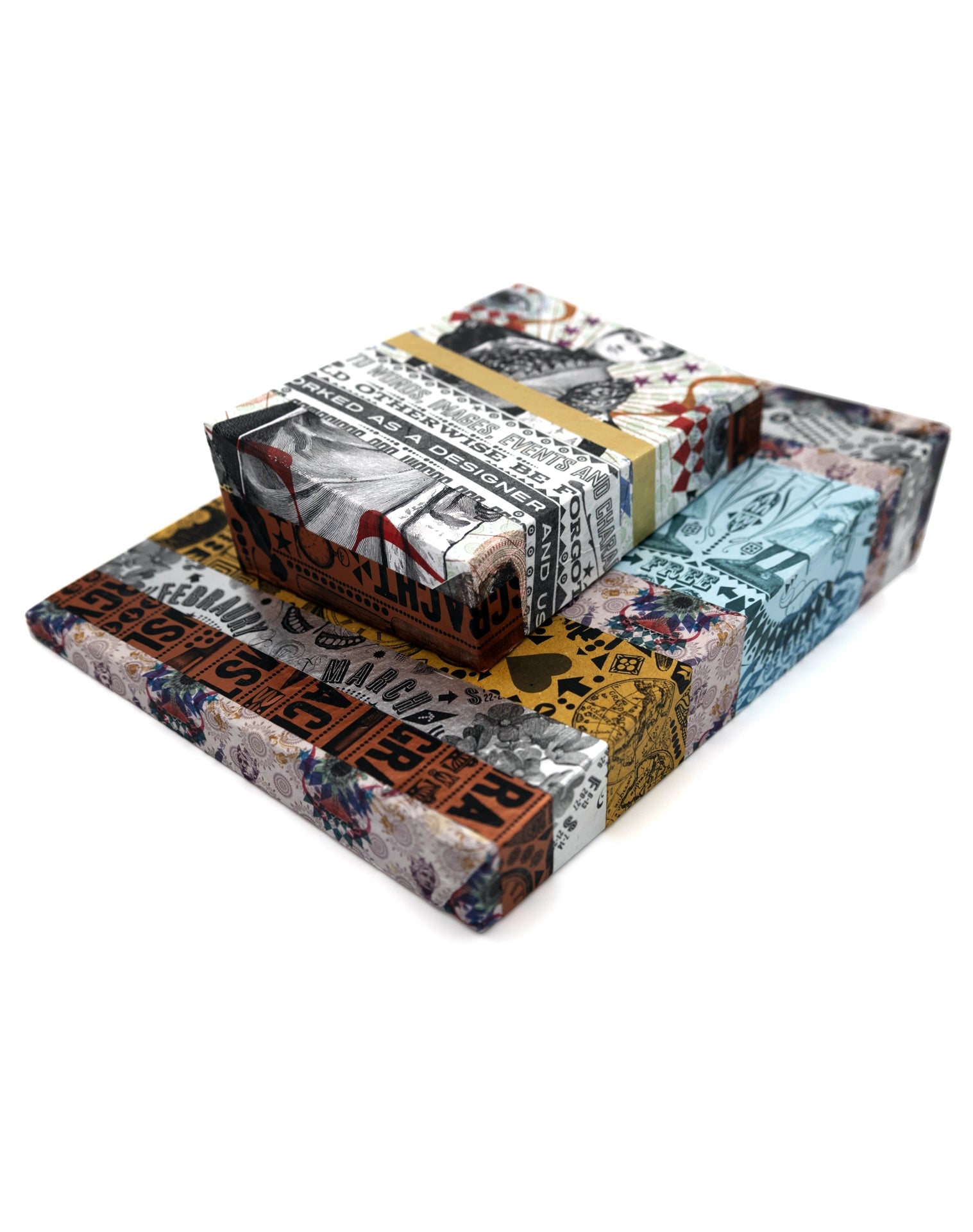 Handmade collage on wood.